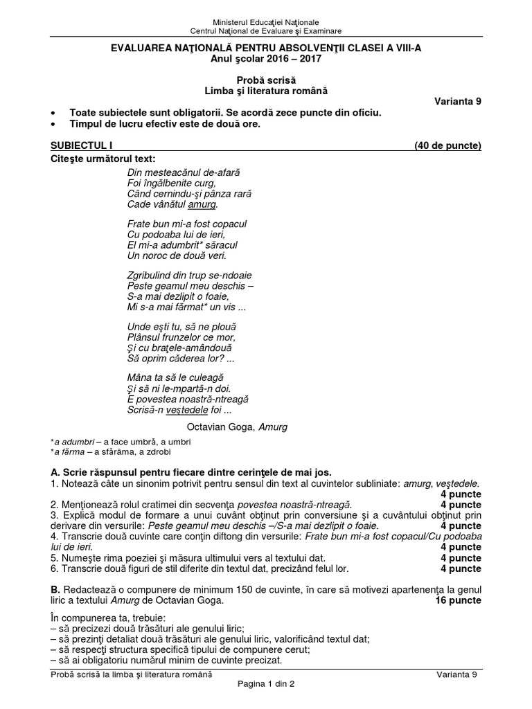 untuk "Simulare Bac 2017 Romana Subiecte"