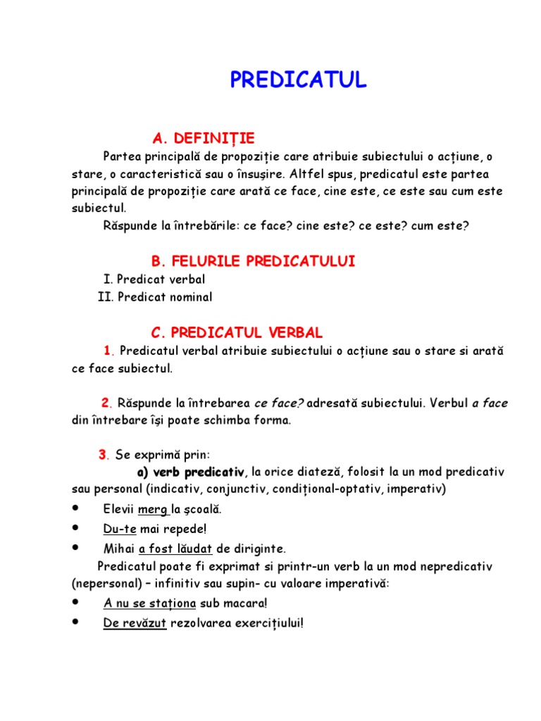 Verb predicativ și verb copulativ подробнее. The predicate provides information about the subject, such as what the subject is, what the subject is doing, or what the subject is like. Predicat nominal, predicat verbal aprofundarea tipurilor de predicate.