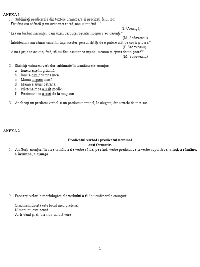 Predicatul este verbal si nominal. Verbul a fi nu este mereu un verb predicativ, astfel încât el poate contribui și la formarea predicatului nominal. Raportul predicativ este exprimat de amândoi termenii care comportă înțeles lexical.