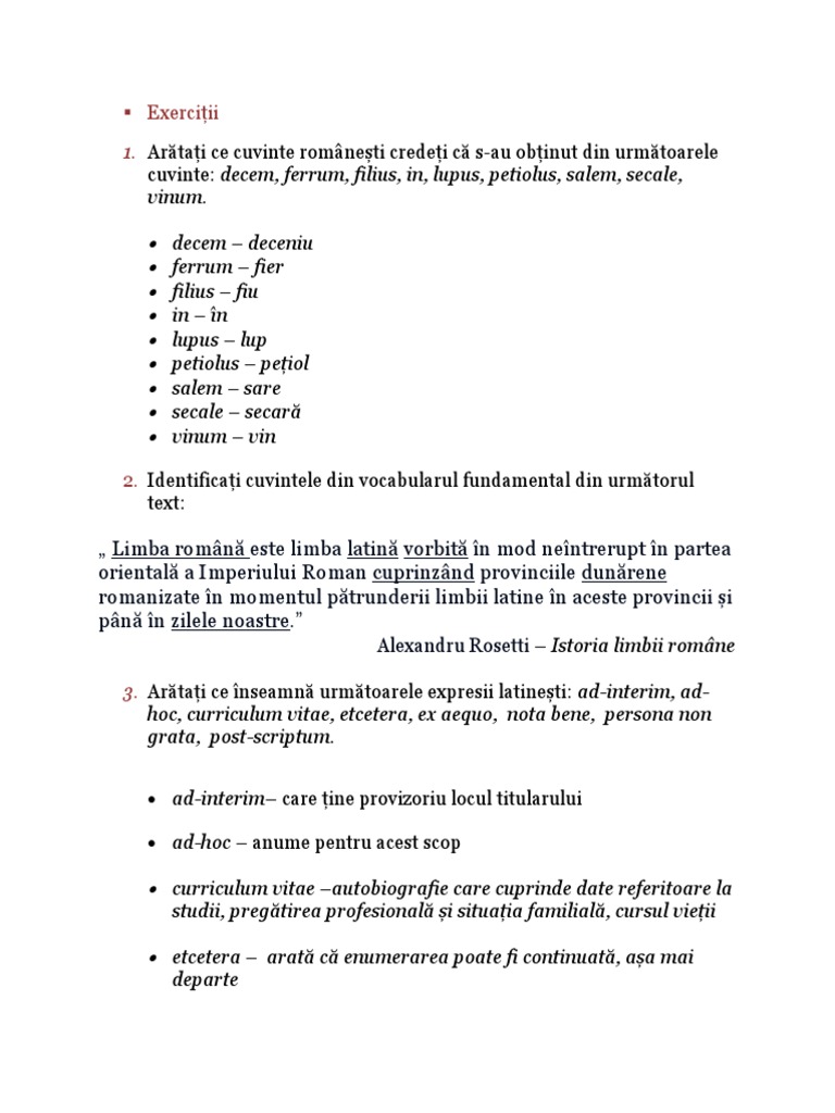 vizitati articolul complet aici : https://thraxusares.wordpress.com/tag/romanizare/ Indicati cuvantul imprumutat si pe cel mostenit din urmatoarele dublete etimologice: Pentru obtinerea pasaportului românesc de tip biometric, aveti nevoie de urmatoarele acte: Unele expresii din limba latină sunt atât de des folosite încât au fost asimilate vorbirii curente, chiar dacă cei care le utilizează nu cunosc semnificaţia lor.