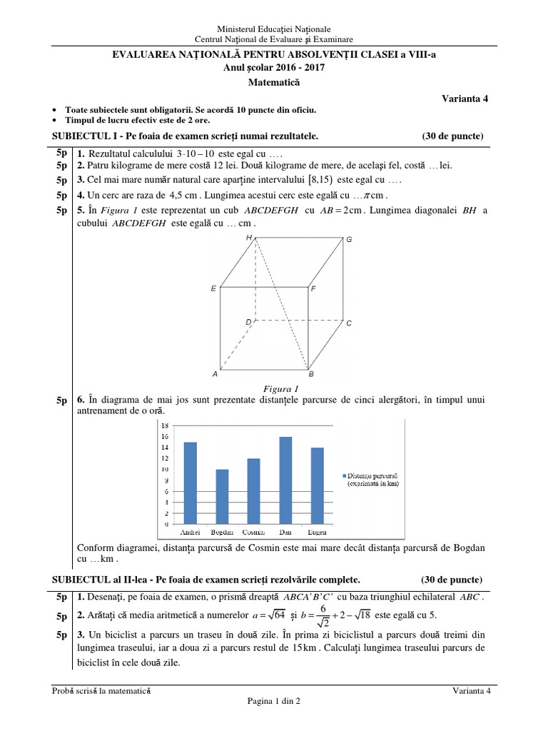 Pentru contestatii, candidatii vor semna o cerere care prevede ca nota initiala poate. Subiecte simulare evaluare matematica 2016. Evaluarea nationala 2016 2017 matematica.